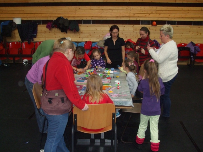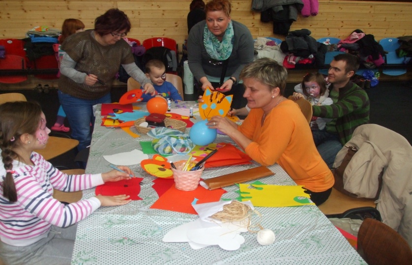 Egy másik állomáson, természetesen a farsangi kellékek, álarcok is gazdáikra találtak, szorgos kezek munkái által.